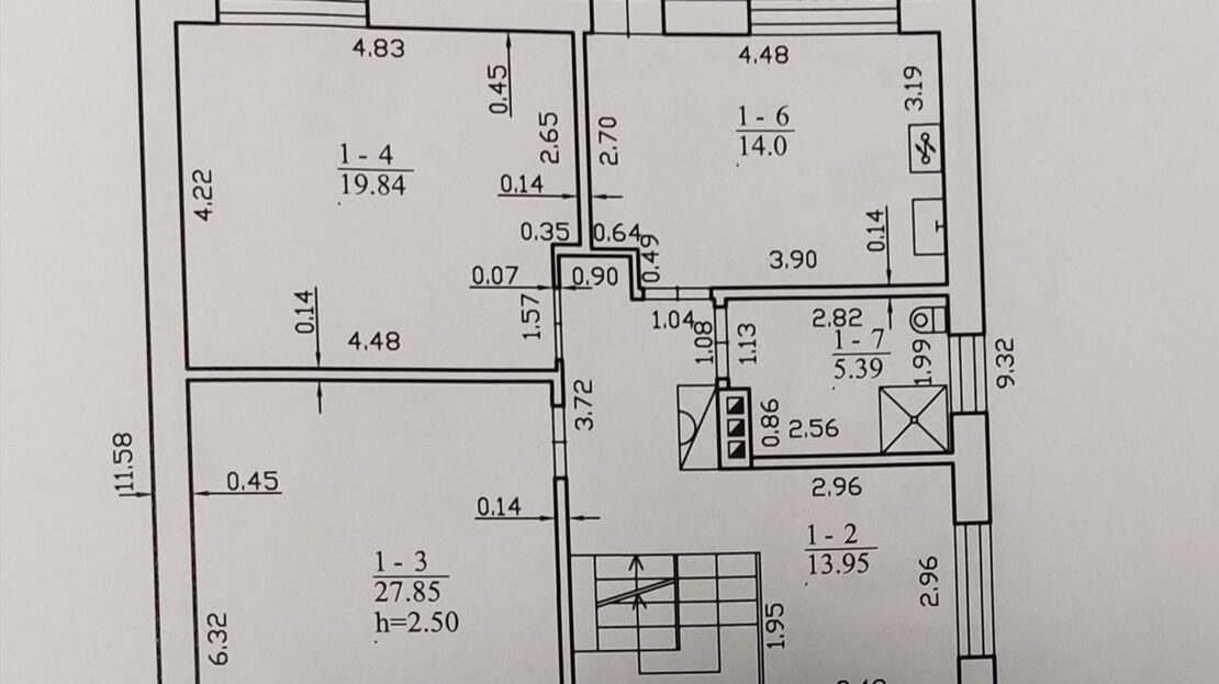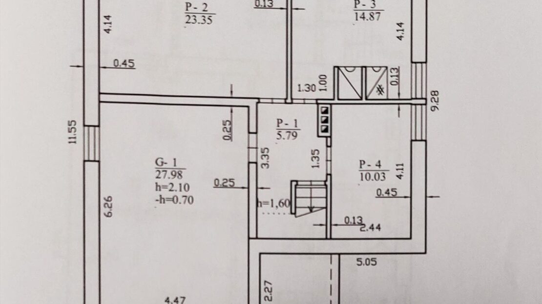 – Įrengti tys gyvenamieji kambariai 27 kv.m , 23 kv.m ,14 kv.m bei wc su dušu.