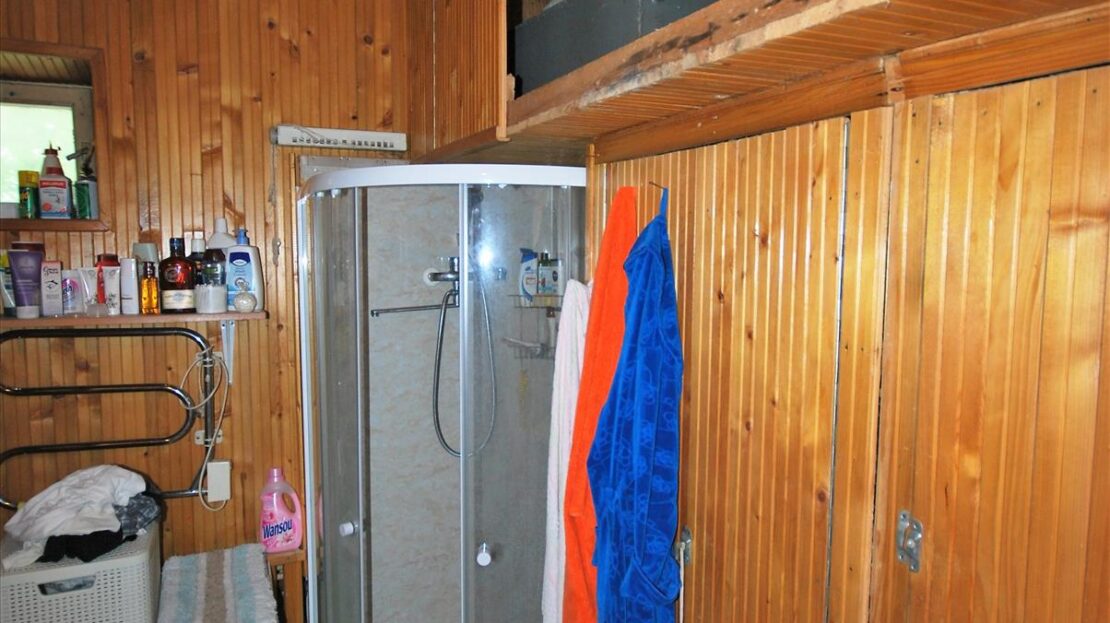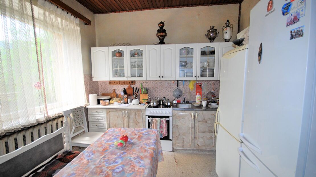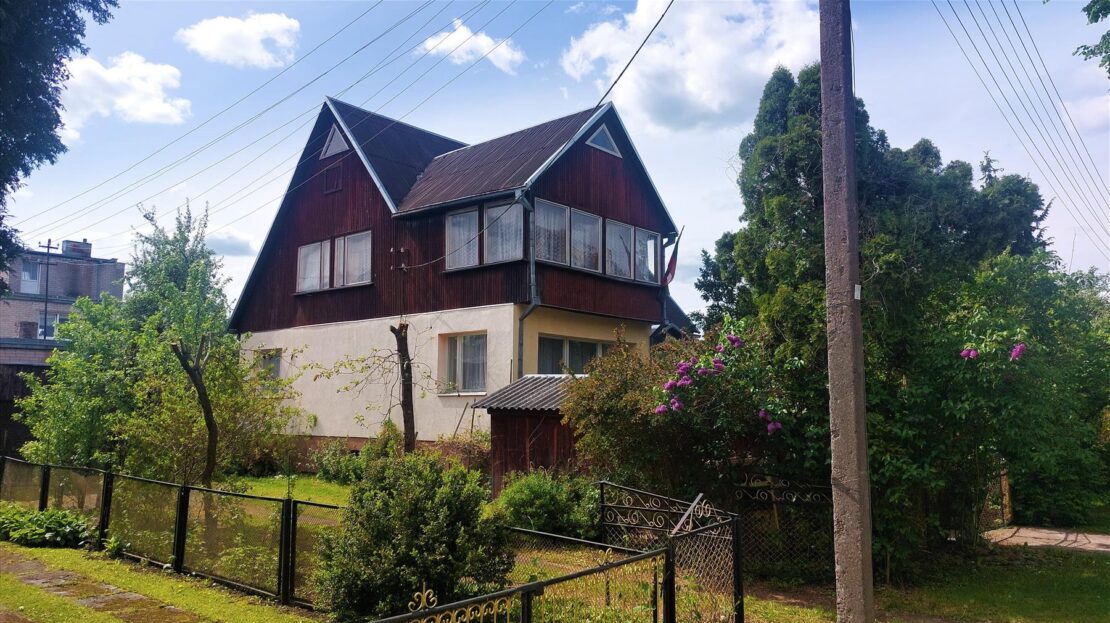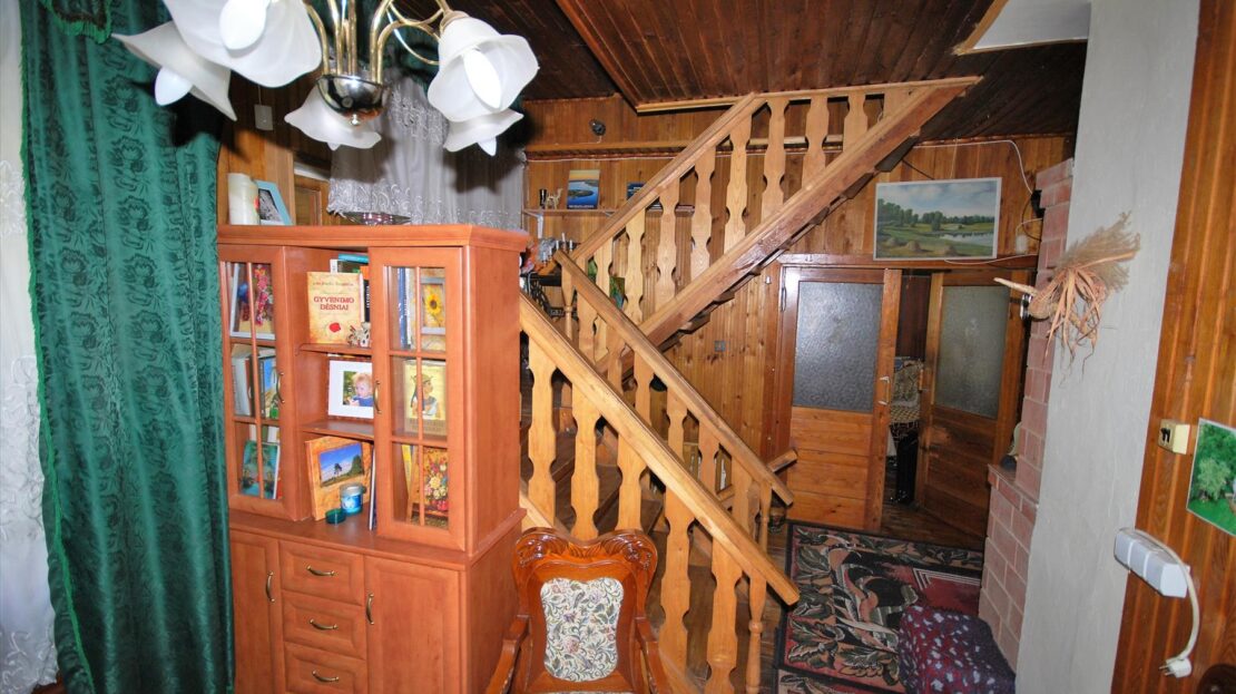 Namas plytinis-medinis , dviejų aukštų su pagalbinėmis patalpomis, abejose aukštuose įrengti WC, Vonios kambariai. Gyvenamas plotas 127 kv.m.